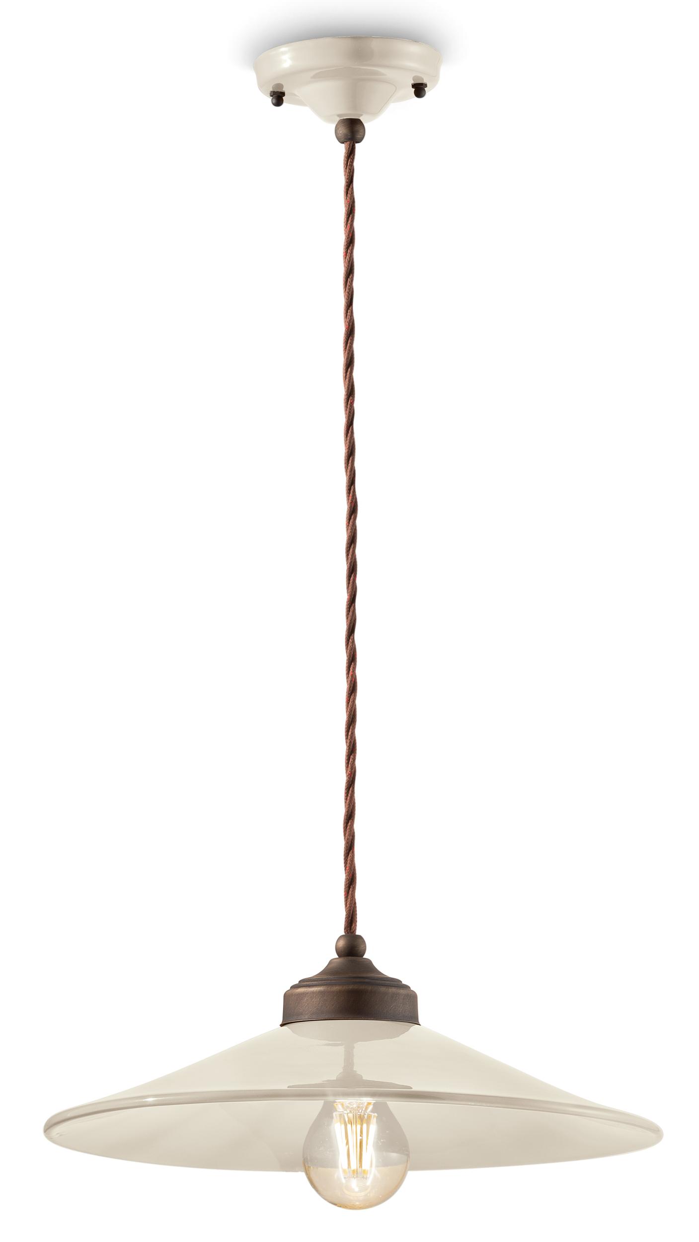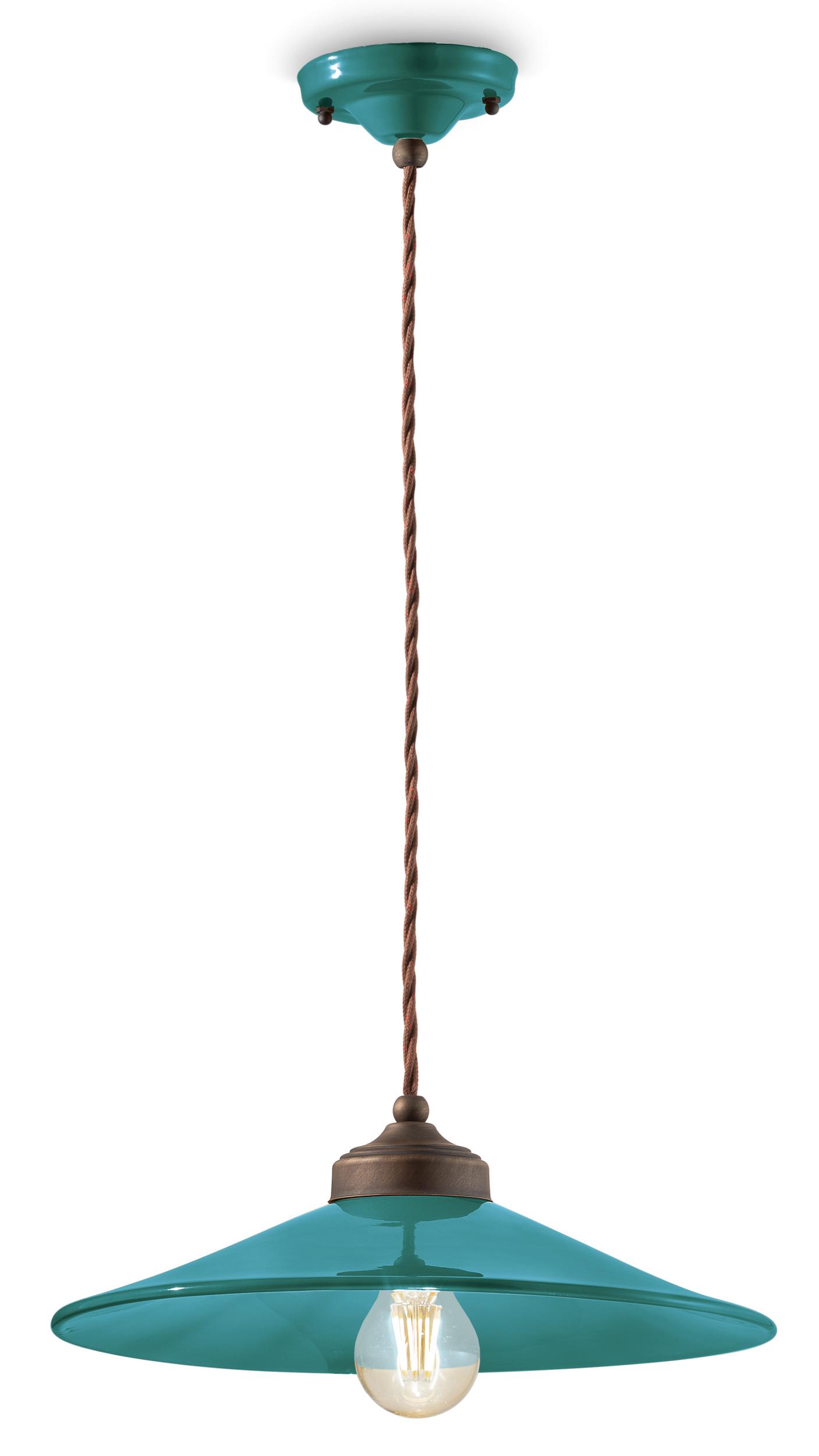 Sospensione D.35 RETRO' COLORS C1631 di Ferroluce con materiale principale: ceramica, cavo in cotone rivestito, parti metalliche in ottone brunito satinato, tipo di verniciatura: brunitura e verniciatura a spruzzo.