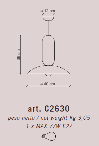 Due volumi sovrapposti che interagiscono tra loro in una dialettica fatta di sfericità e lucentezza, enfatizzata a sua volta da una finitura brillante che sottolinea le superfici ed evidenzia al massimo l’estensione volumetrica dell’oggetto sospeso. La sorgente, posizionata inferiormente e parzialmente schermata dal corpo lenticolare, si apre liberamente all’ambiente che illumina.