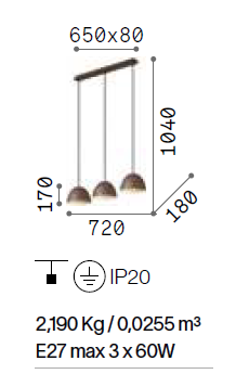 Rosone e diffusore in metallo rifinito in vernice opaca con finitura coffee. Parabola interna ondulata e smaltata. Cavo in tessuto. Lampadine escluse.
