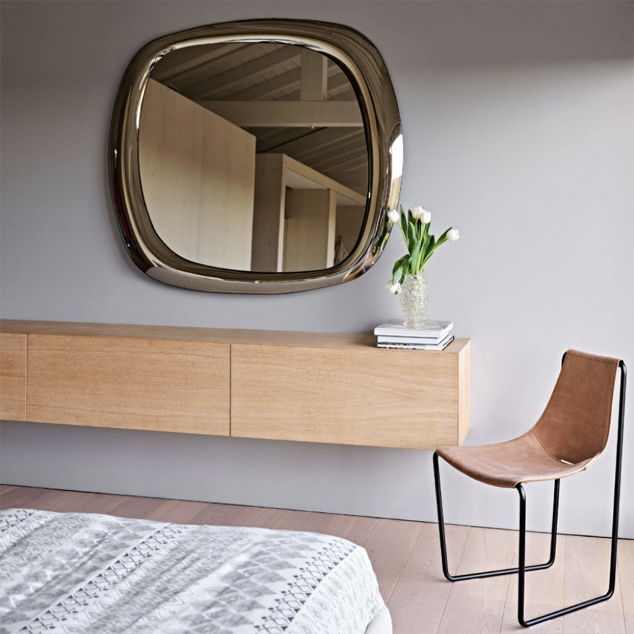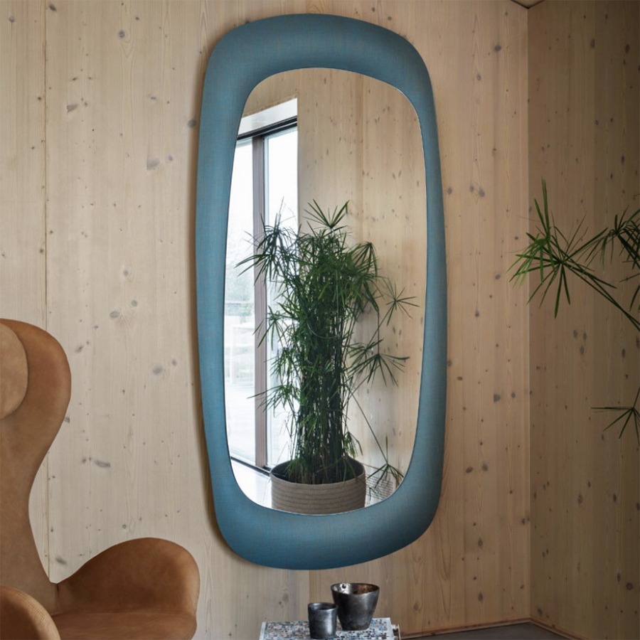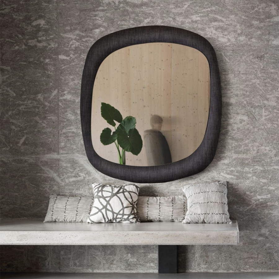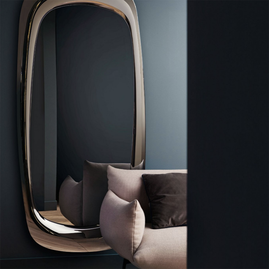 Specchio Bold con cornice in bronzo o rivestito in tessuto o pelle di Midj