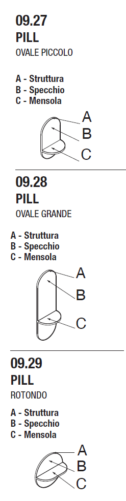 • 09.27 Ovale piccolo cm: L. 45 x P. 27,5 x H. 80
