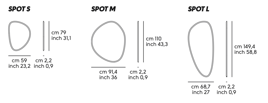 Disegnato da Nicola Bonriposi insieme a Midj, lo specchio Spot gioca con le forme organiche per decorare con originalità le pareti di spazi domestici e collettivi. Un’aura di raffinatezza si esprime attraverso linee pulite che si addicono ad ogni tipo di ambiente. Il perimetro del cristallo bisellato, riflette la luce da tutte le angolazioni.
