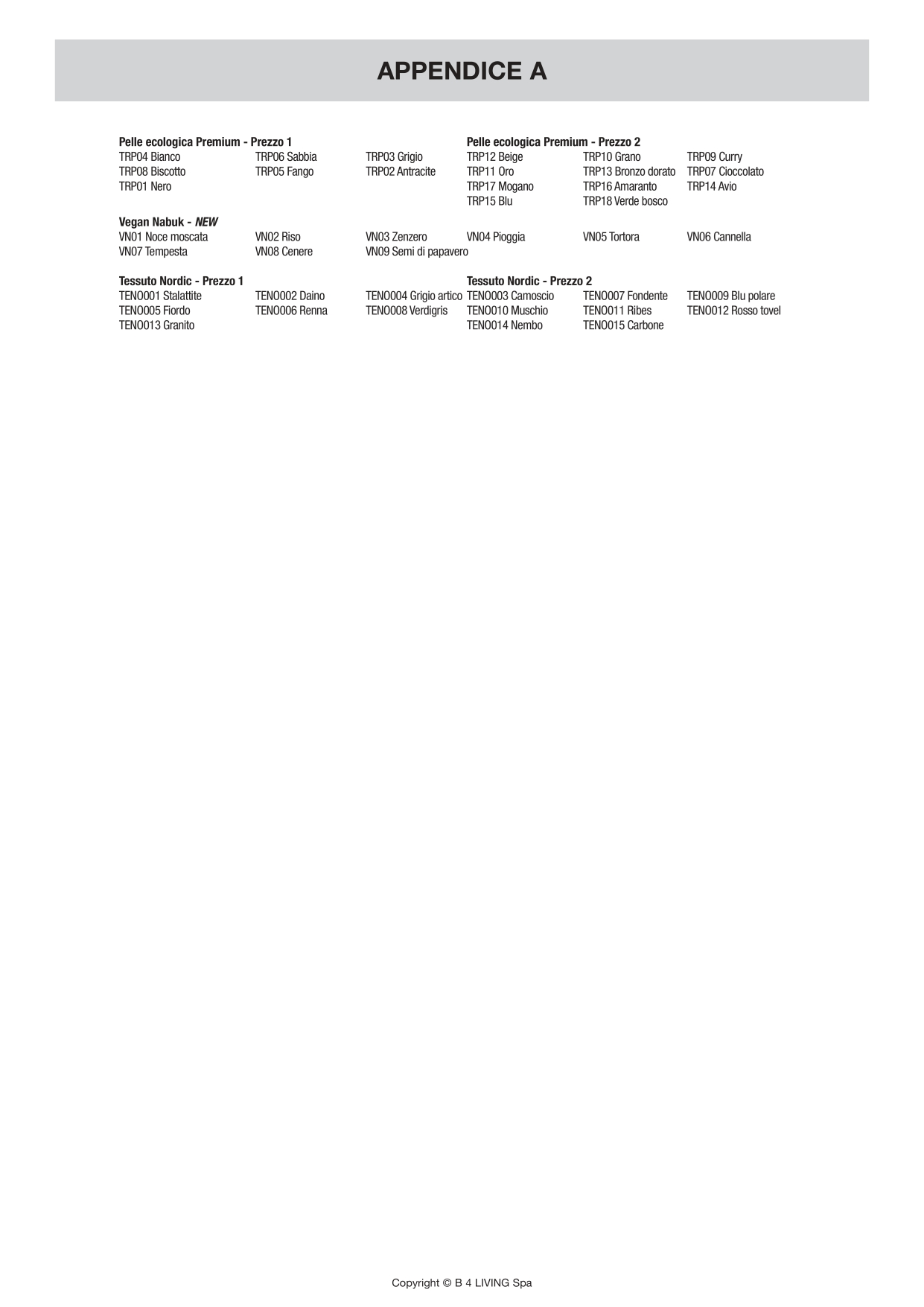 Inserire Colore e rispettivo Codice della finitura scelta nell'apposita casella in alto [INSERISCI CODICE COLORE]
