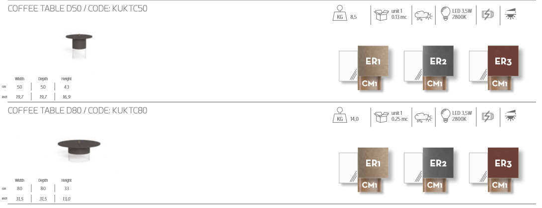 KUKTC80 cm: Ø 80 x H. 33 con lampadina LED 3,5W 2800K