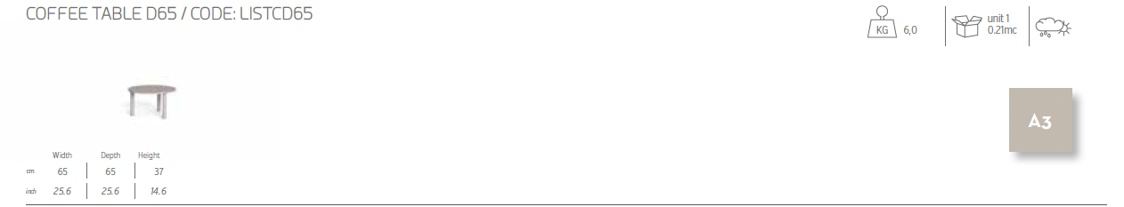 • Tavolino da caffè Lisa D65: A3- Alluminio WARM WHITE