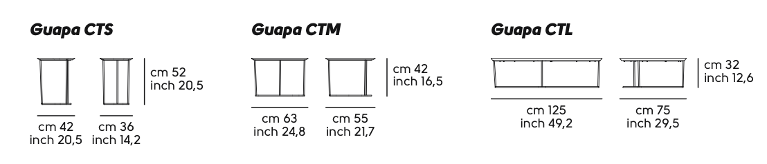 Tavolino Guapa CT  con struttura in metallo e piano rivestito in cuoio. Il coffee table Guapa è disponibile in tre diverse varianti.