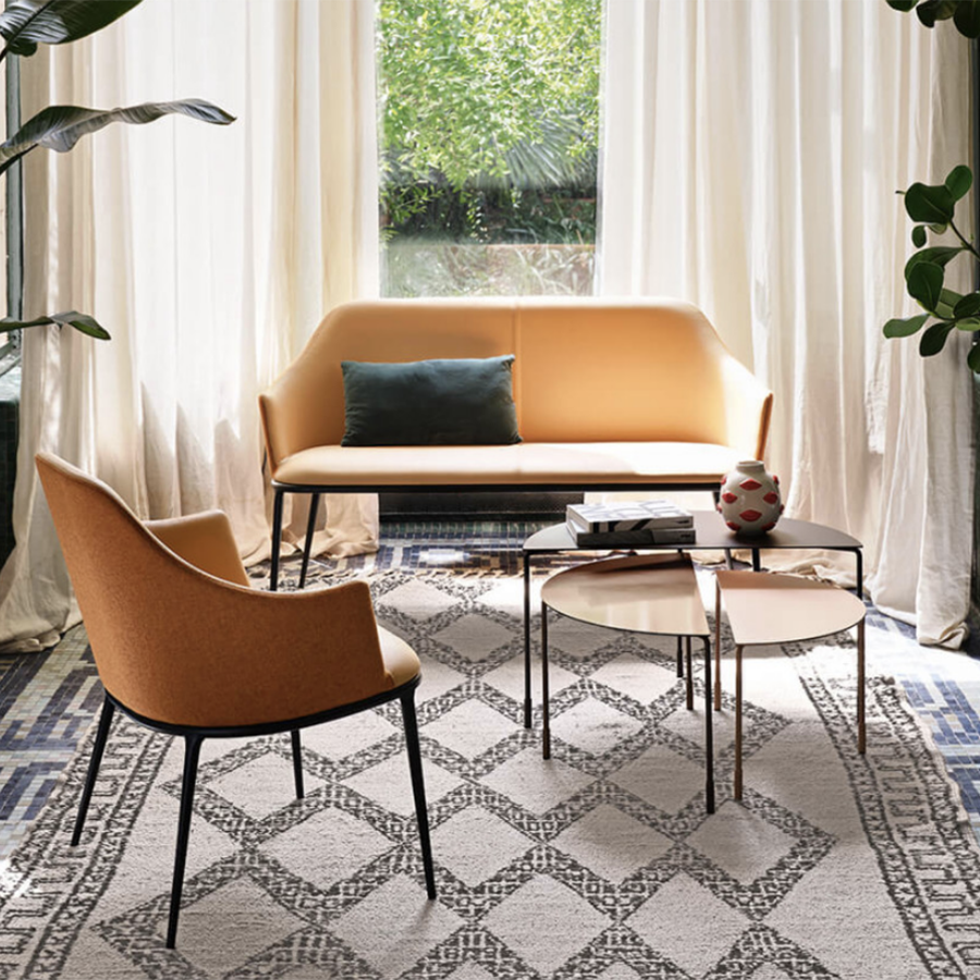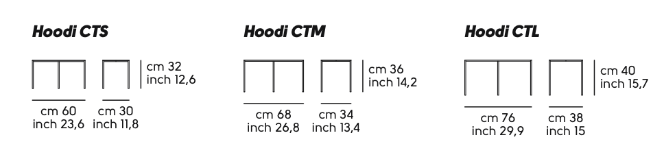 La collezione Hoodi è composta da tre tavolini dalla forma a mezzaluna, con dimensioni e altezze diversi.