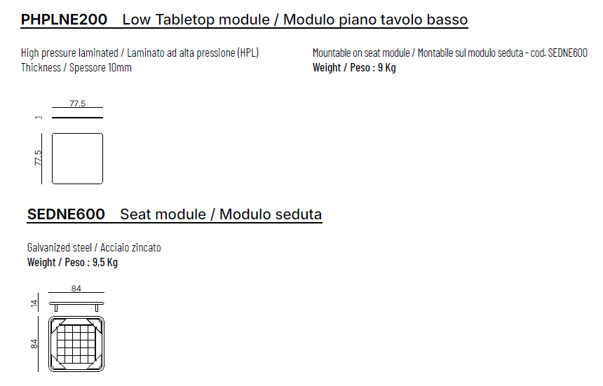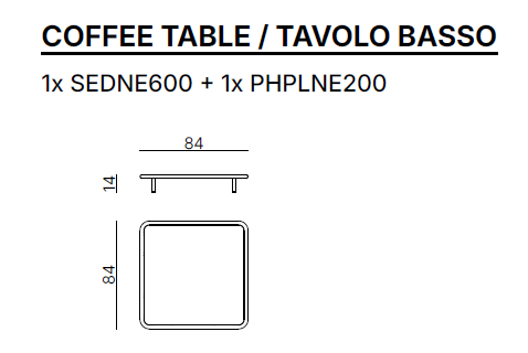 • cm: L. 84 x P. 84 x H. 14