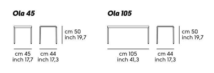 Ola coffee table con struttura e piano in metallo verniciato o effetto industrial.