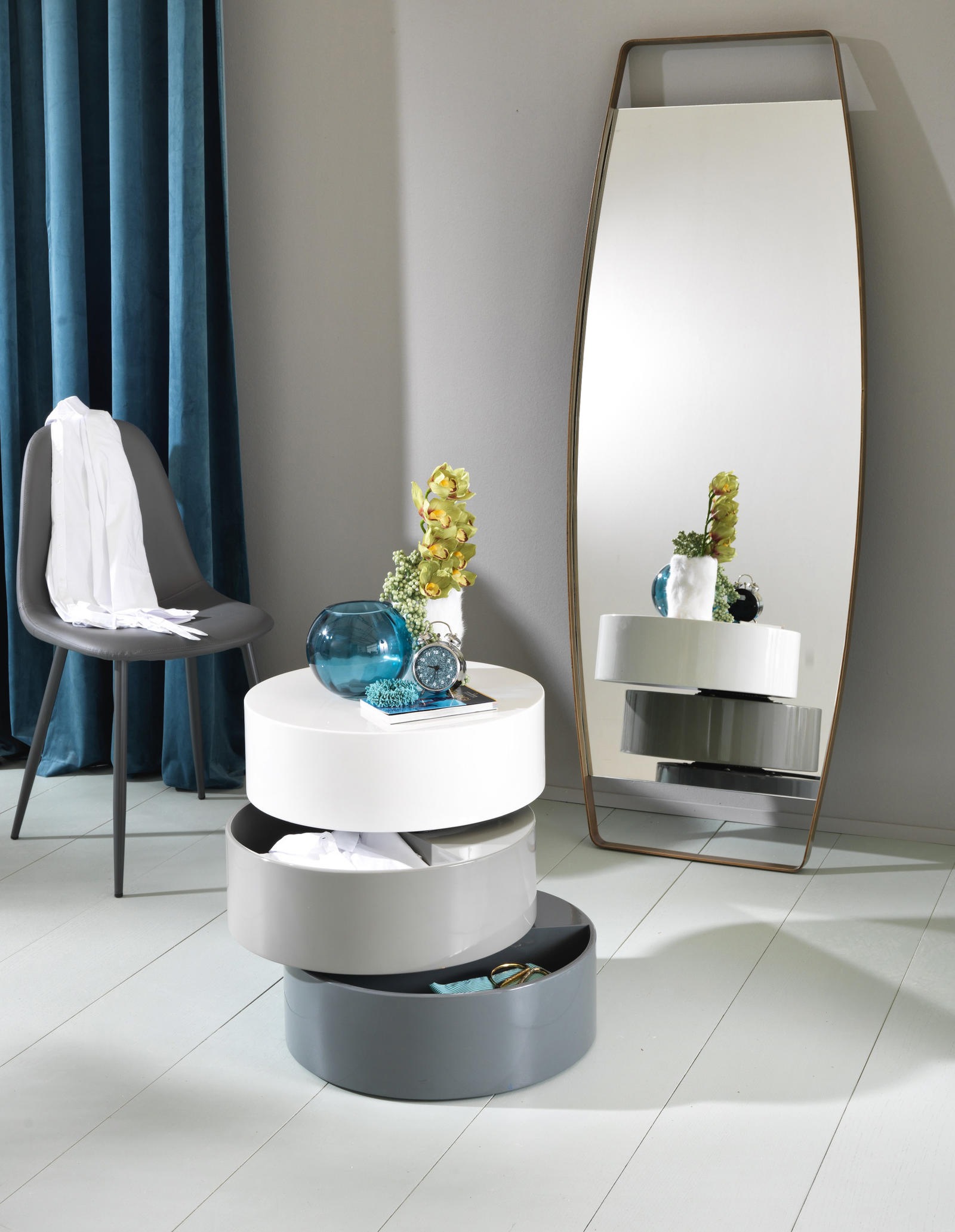 • n.3 ripiani contenitori girevoli laccati, bianco, grigio chiaro e grigio scuro