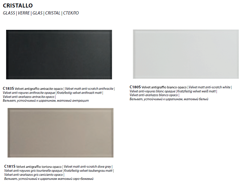 N.B. Non tutte le finiture sono disponibili per tutte le dimensioni.