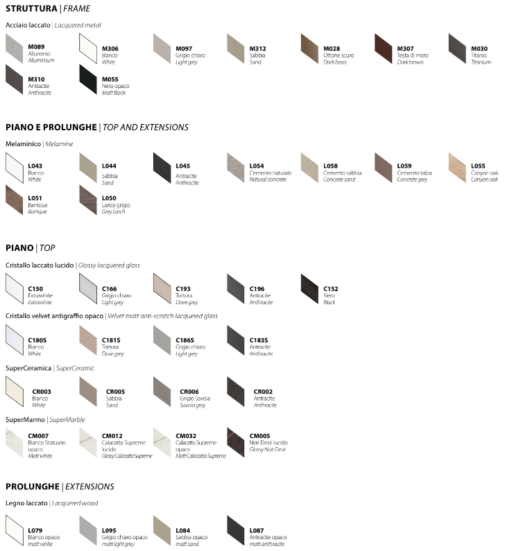 Reid è dotato di tre prolunghe che da cm 140 allungano il tavolo a cm 290, con meccanismo di allungamento in allumnio laccato in tinta con la struttura. Il piano è disponbile in melaminico, melaminico Materico, laminato Fenix, legno laccato, cristallo o SuperCeramica, la struttura è in acciaio laccato in diverse finiture. Caratterizzato dalla sua linea sempice e pulita si adatta a qualsiasi tipo di ambiente domestico.