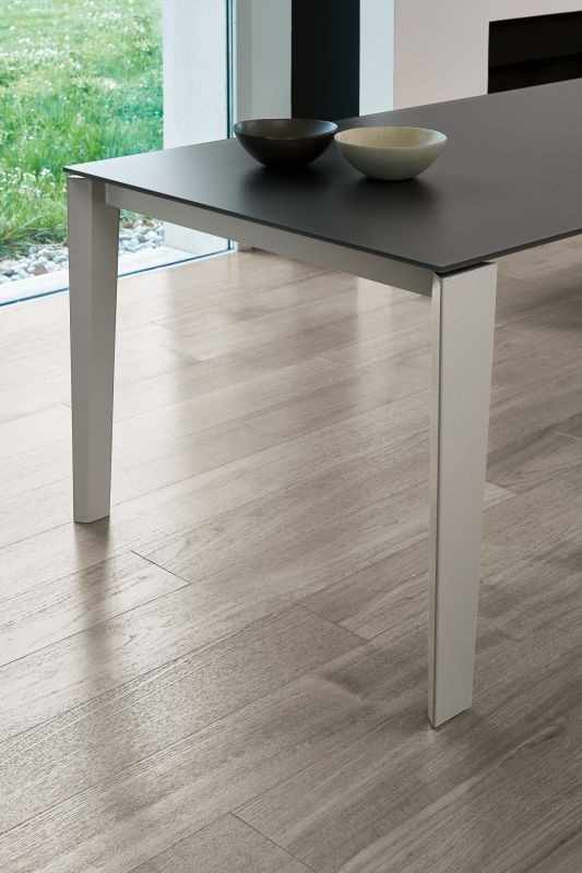 Tavolo Winny allungabile dal design Moderno ed elegante indicato sia per cucine che sale da pranzo. La struttura realizzata in acciaio sorregge il piano proposto in legno impiallacciato, cristallo o ceramica.