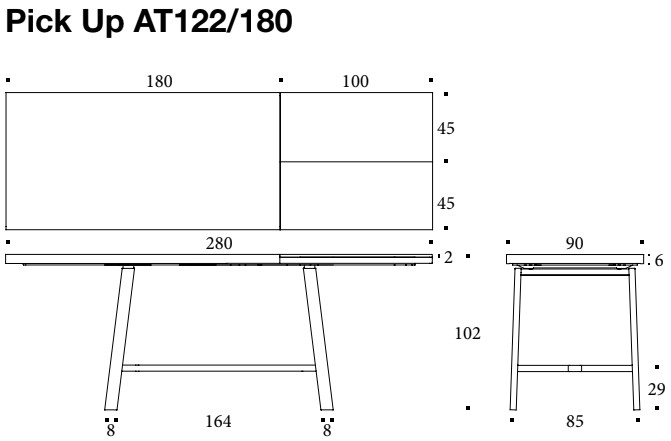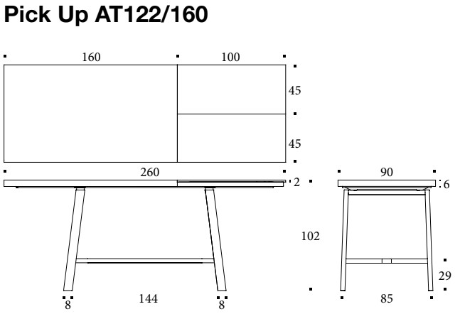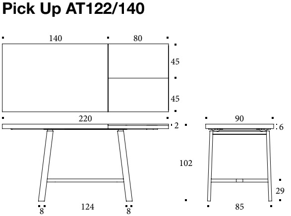 Tavolo alto Pick Up di Altacom da pranzo/penisola, struttura allungabile in metallo, meccanismo telescopico, piano in nobilitato. Apertura sincronizzata con prolunga interna a libro.
