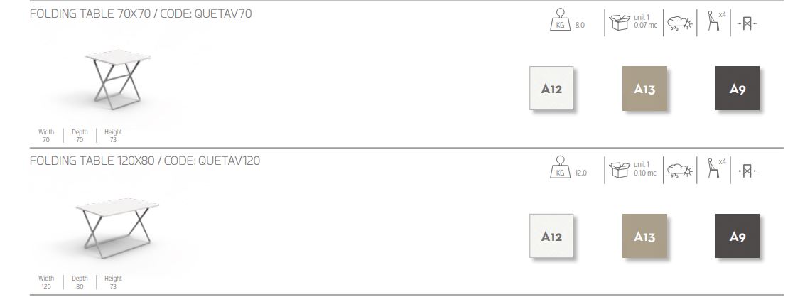 La linea Queen di Talenti offre questo tavolo pratico e comodo perchè pieghevole e quindi facilmente riponibile quando non utilizzato. Nella sua struttura interamente in alluminio verniciato nelle finiture bianco, tortora e carbone arrederà bene qualsiasi ambiente voi vorrete ed è disponibile nelle due varianti quadrato e rettangolare.