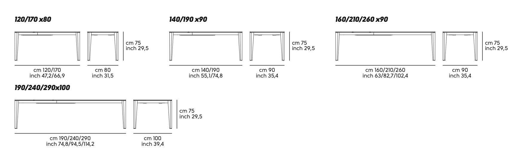 Tavolo Diamante con piano allungabile disponibile in varie misure.