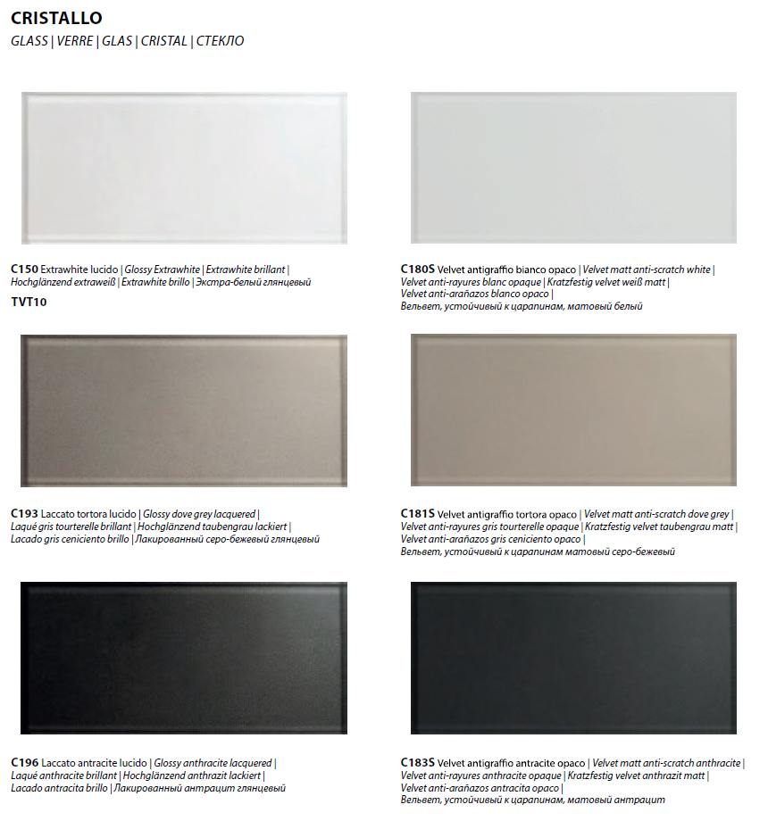NB. Non tutte le finiture sono disponibili per tutte le dimensioni.