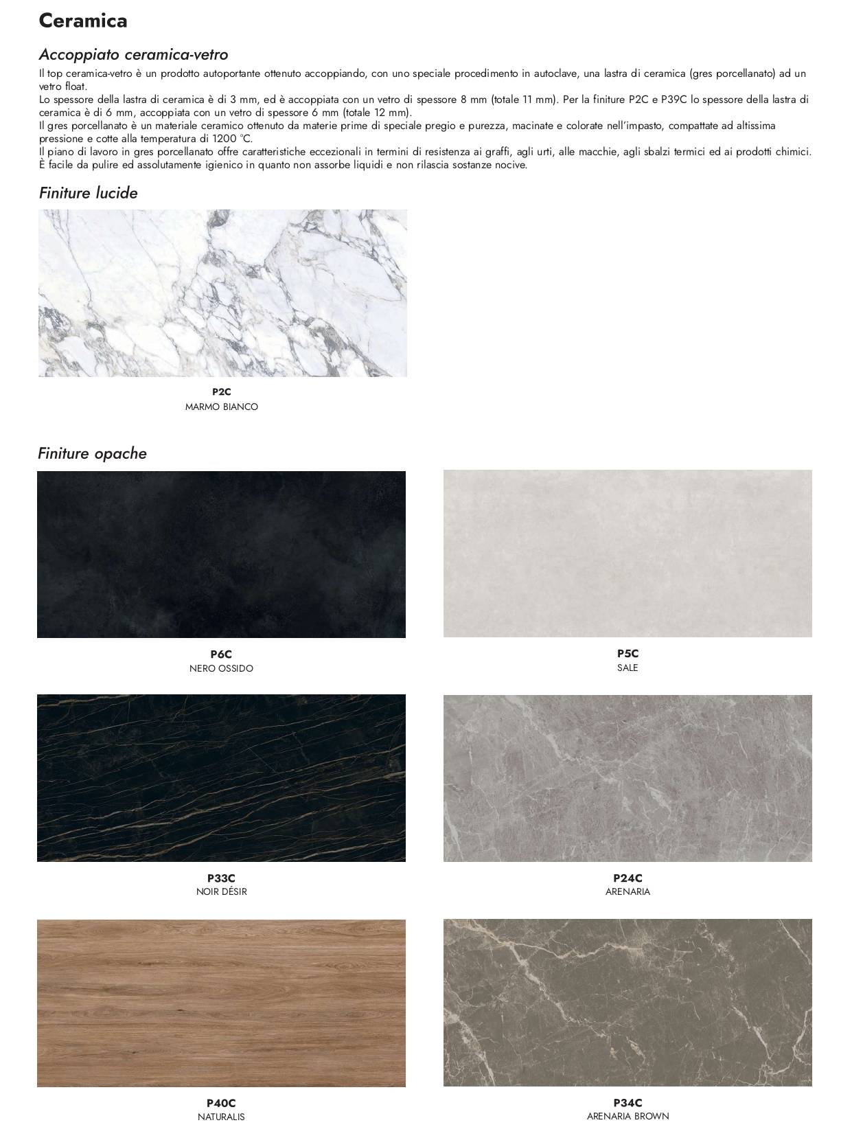 ● Piano in ceramica su vetro: gres porcellanato accoppiato a vetro float oppure in nobilitato