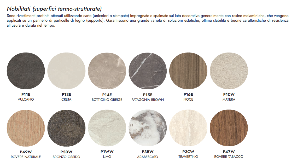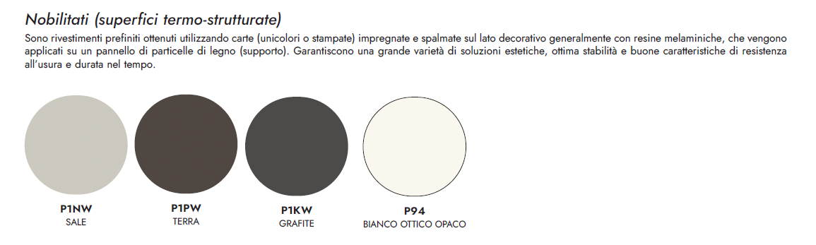 ● Allunga in nobilitato coordinato alla finitura del piano ceramico o in tinta per il piano in nobilitato
