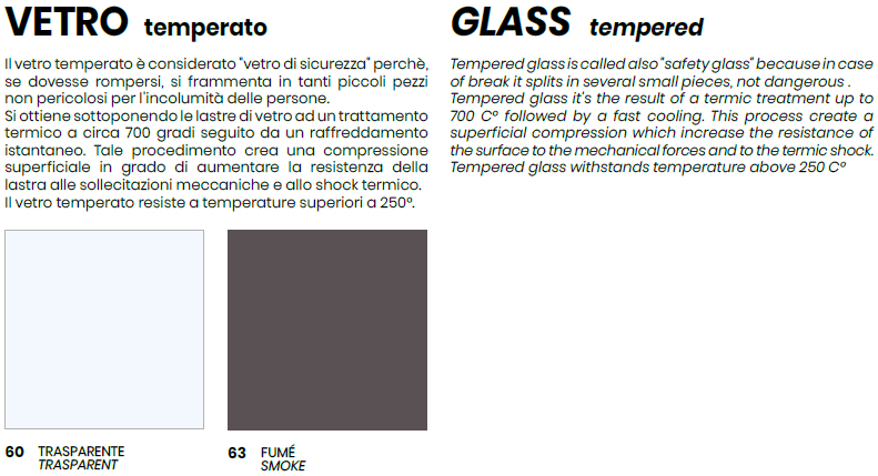 Tavolo con struttura composta da un tubolare a sezione rettangolare unito manualmente con la tecnica della saldobrasatura a ottone per la creazione di una struttura unica dal formalismo industrial. I piani sono disponibili in vetro temperato trasparente o fumè e ceramica accoppiata con il vetro.