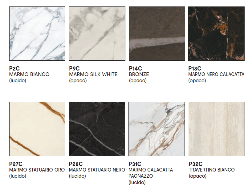 • Non tutte le finiture sono disponibili per tutte le dimensioni
