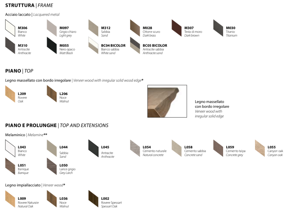 • ALLUNGABILE cm: L.190 allungabile a 240 fino a 290xP.106xH.75