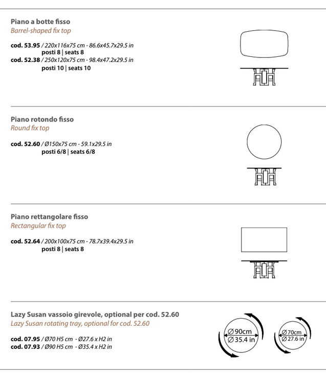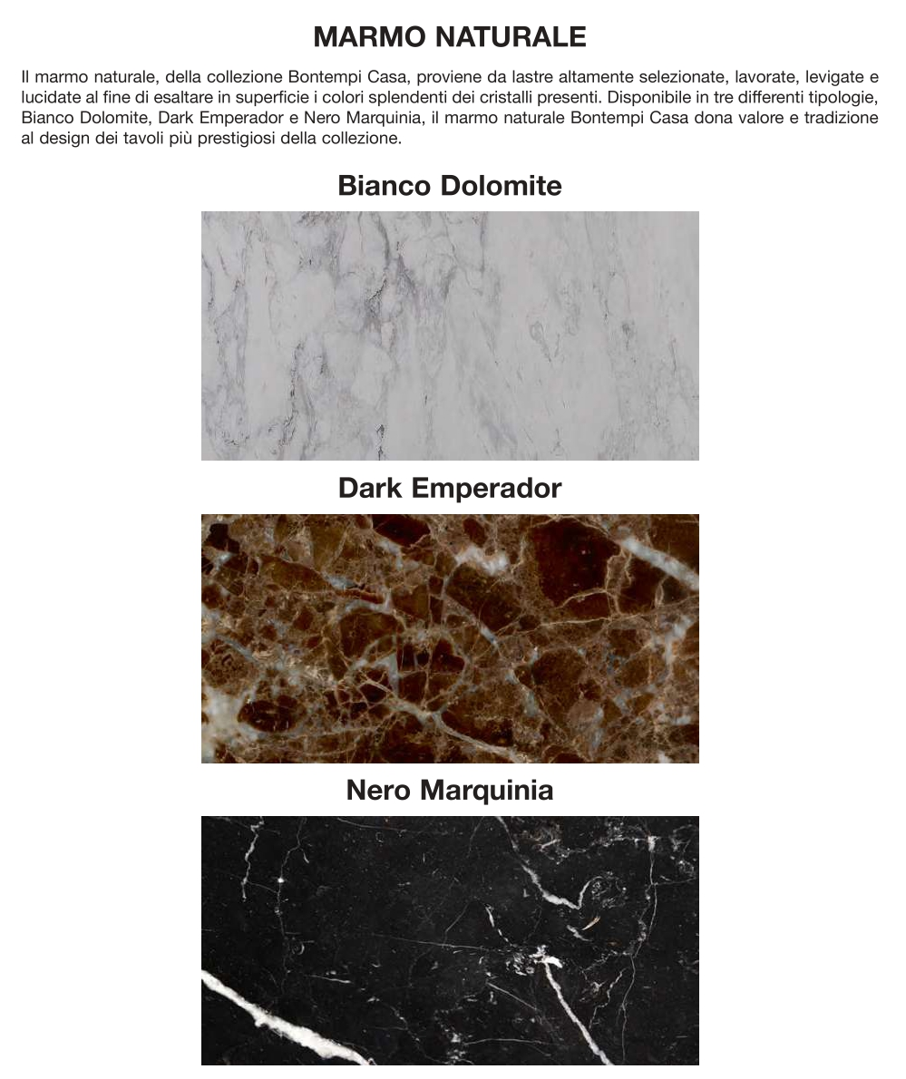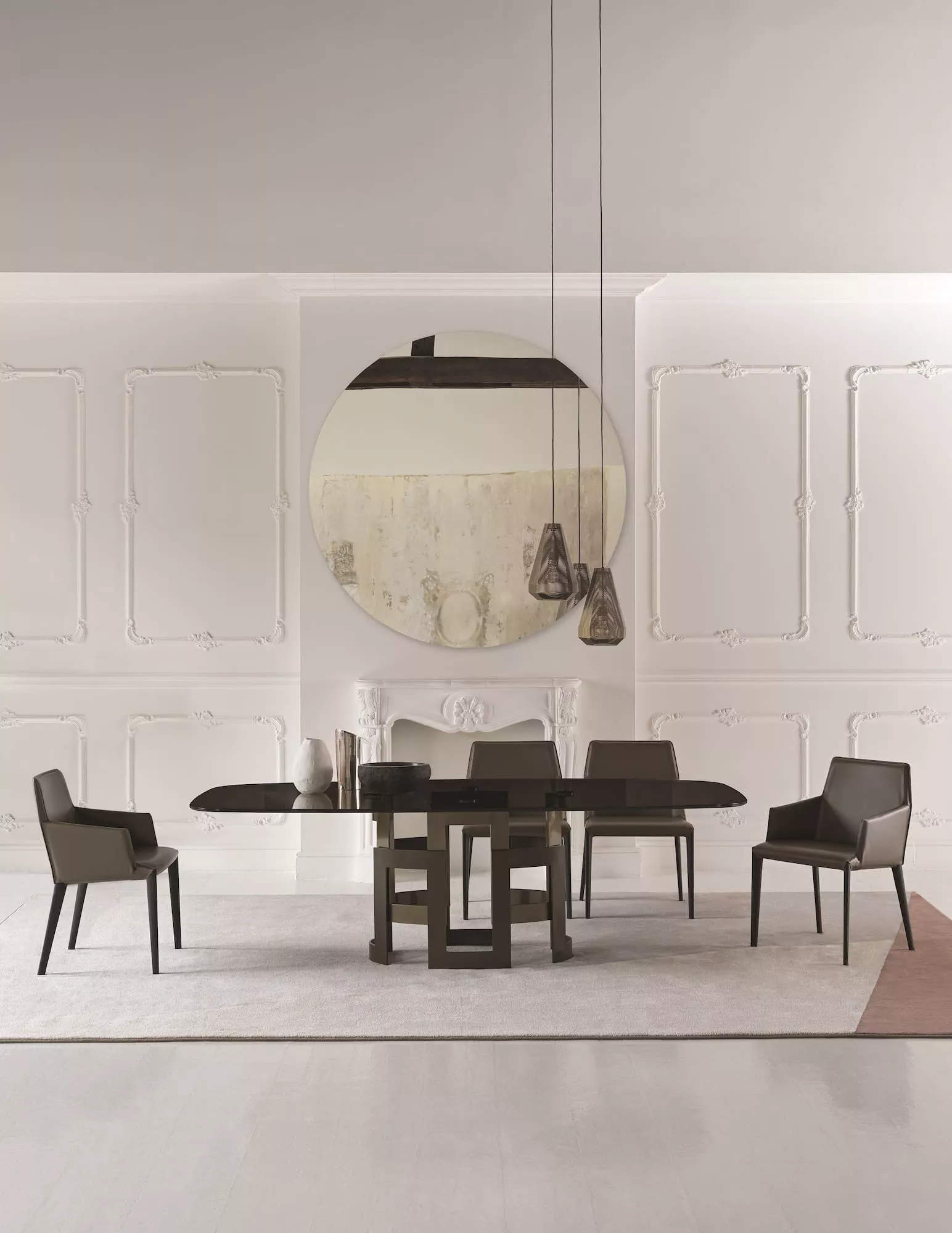 Tavolo Imperial di Bontempi con struttura a bracciale e piano disponibile in numerosi materiali e finiture. Imperial è disponibile con il piano in varie forme e dimensioni, fisso o allungabile.