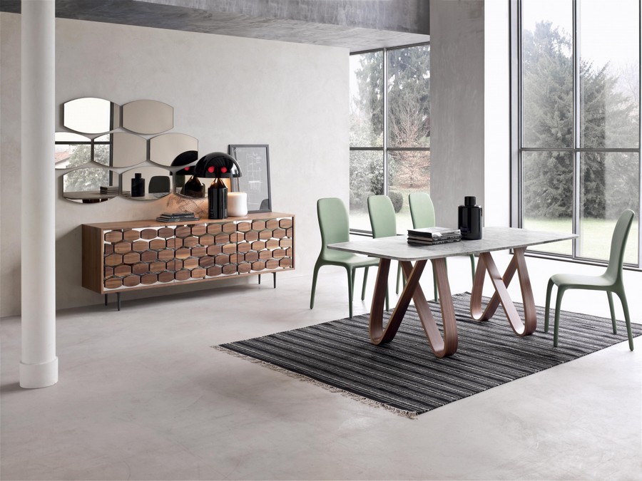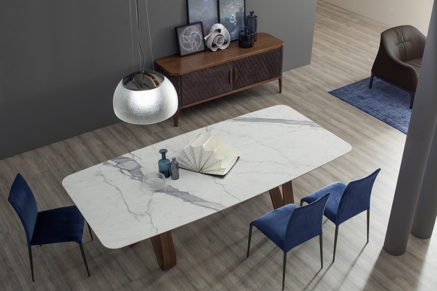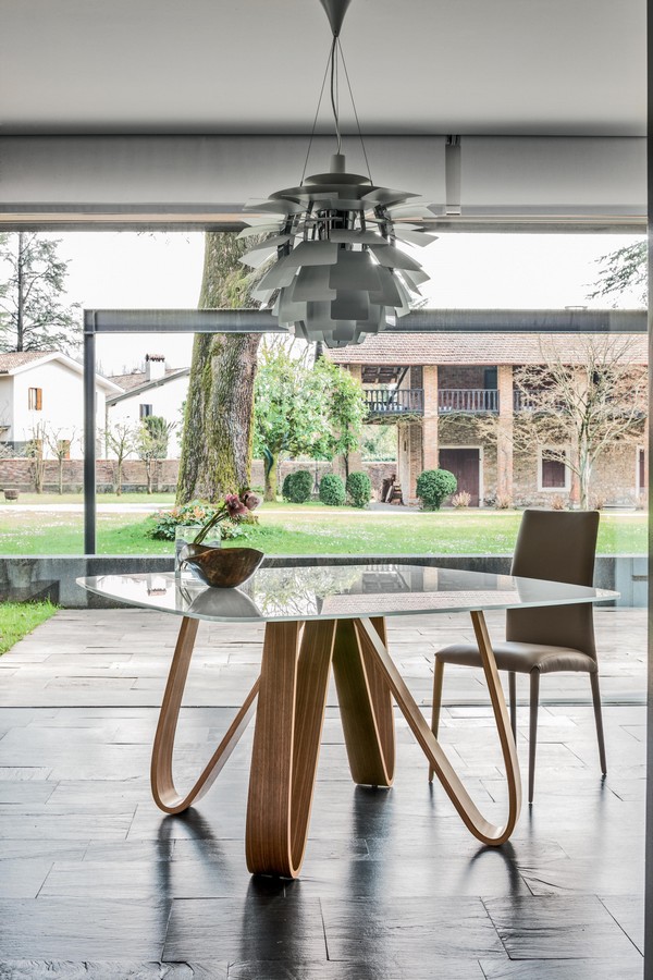 Tavolo fisso o allungabile Butterfly di Tonin casa con piano in vetro, legno, marmo, gres o ceramica. Le gambe sono realizzate in legno in multistrato termo curvato che combinano un deign delicato, con la solida dolcezza del legno curvato. Esattamente come le farfalle, anche per questo tavolo i colori cambiano quasi infiniti. Potrete trasformare le vostre stanze, con la grazia di una farfalla. Tavolo allungabile con binario in allumino. Il disegno audace della base si amalgama con la classicità del vetro per riscoprire un tavolo dal design inimitabile.