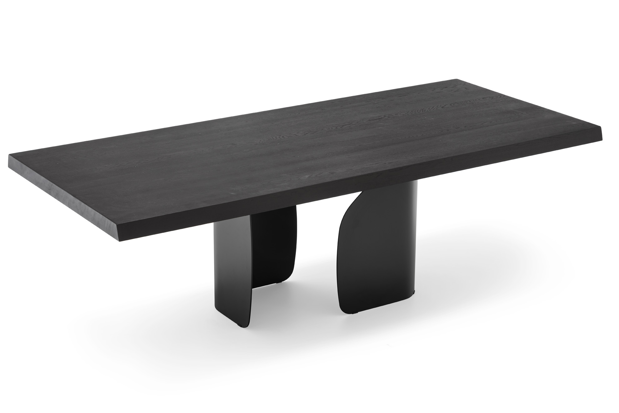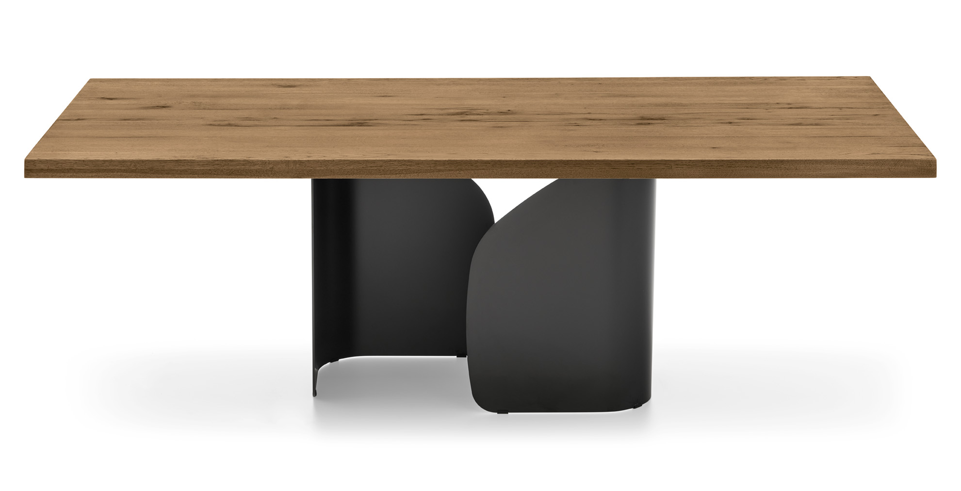 Tavolo fisso rettangolare Twins di Calligaris. Twins è un tavolo di grande impatto visivo. Merito del basamento, realizzato con due elementi di lamiera curvata e sagomata, che come due ali fanno spiccare visivamente il volo al piano. Numerose le finiture disponibili, che consentono di interpretare il tavolo in modo più classico o più moderno.