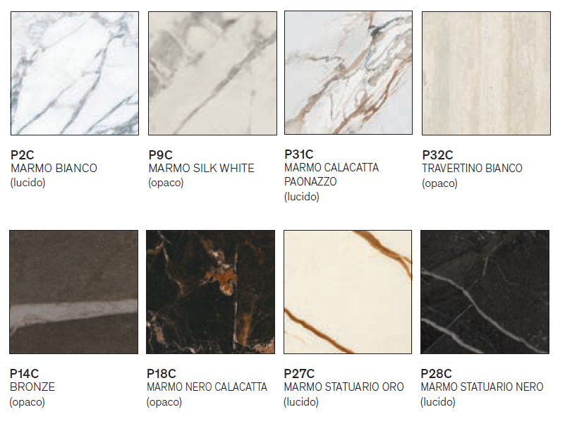 • Non tutte le finiture e combinazioni sono disponibili per tutte le dimensioni