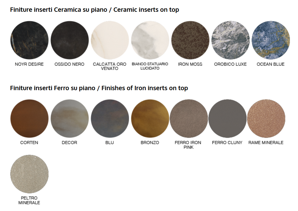 Su richiesta è disponibile il piano con inserto in ceramica o in acciaio.