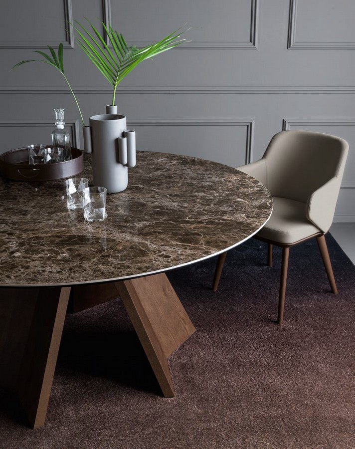 Le ali di Icaro riprendono vita nella tua zona dining e fanno da base a questo nuovo tavolo fisso rotondo, particolarmente elegante e al tempo stesso funzionale.