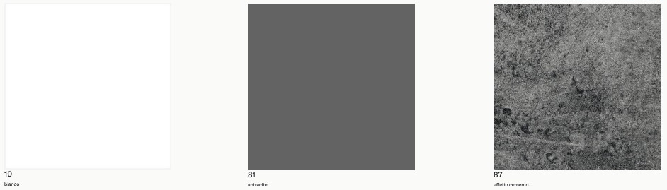 Struttura in acciaio verniciato a polveri, disponibile nei colori bianco e antracite. Piano stratificato compact colore bianco, antracite o effetto cemento. Piano disponibile nella versione quadrata o rettangolare a filo col telaio.