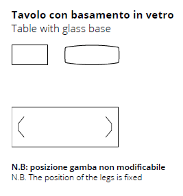 Tavolo Murano ovalizzato o rettangolare fisso di Altacorte con basamento in vetro e piano disponibile in numerose finiture e dimensioni.