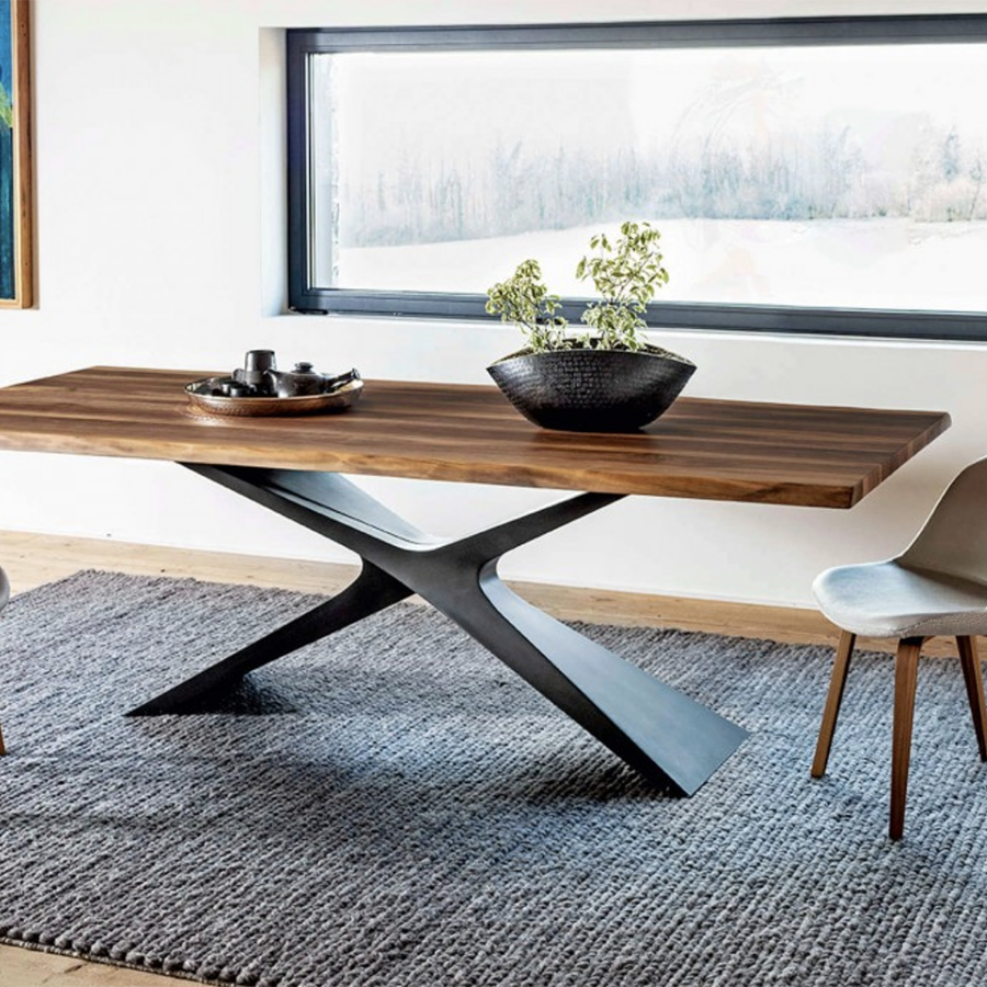 Tavolo fisso Nexus con basamento in Baydur® o effetto cemento spatolato, disponibile anche in versione bicolor.