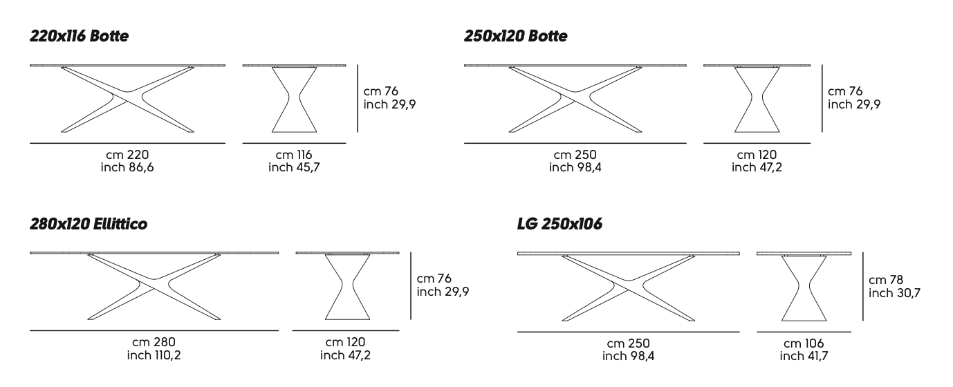 Piano in vetro o cristalceramica disponibile in versione a botte o ellittico.