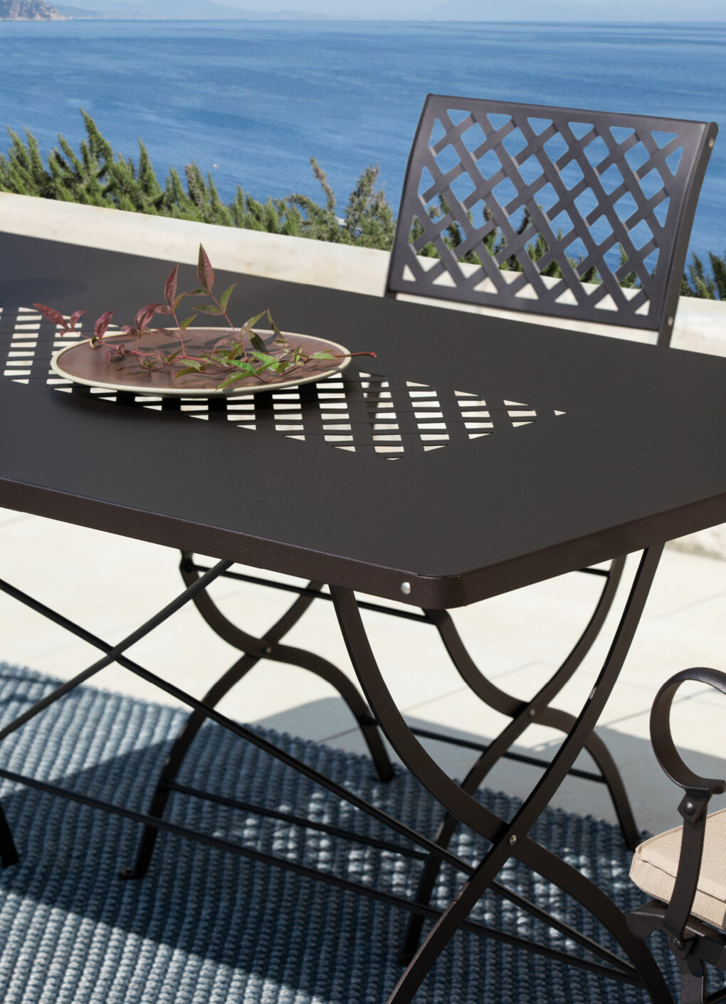 Il tavolo pieghevole Springtime di Vermobil è in ferro zincato,  garantisce massimo comfort e praticità.