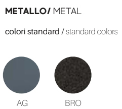 La verniciatura dei metalli è effettuata con polveri termoindurenti poliestere Qualicoat classe 1 e classe 2. Possibilità di trattamento aggiuntivo prima della finitura con applicazione fondo espossidico.