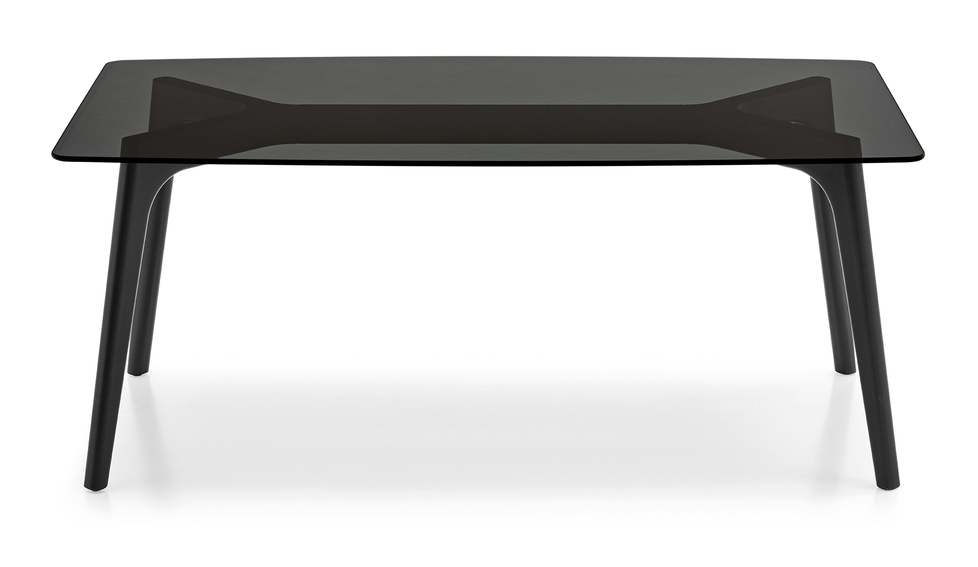 Tavolo Pod CB4862-FB di Connubia con struttura in faggio e piano in vetro temprato. Pod è un tavolo elegante e contemporaneo che combina in un affascinante contrasto la calda e solida natura del legno e quella eterea e moderna del vetro. La struttura in legno massello offre infatti una distintiva solidità e robustezza ai leggeri piani in vetro trasparente o fumè, che a loro volta permettono di apprezzare le raffinate lavorazioni artigianali del legno finemente smussato e levigato per ottenere superfici e sezioni che ne esaltino la bellezza delle venature. Le gambe affusolate donano dinamicità e leggerezza e la connessione organica tra queste ed il traverso rappresenta un dettaglio distintivo.