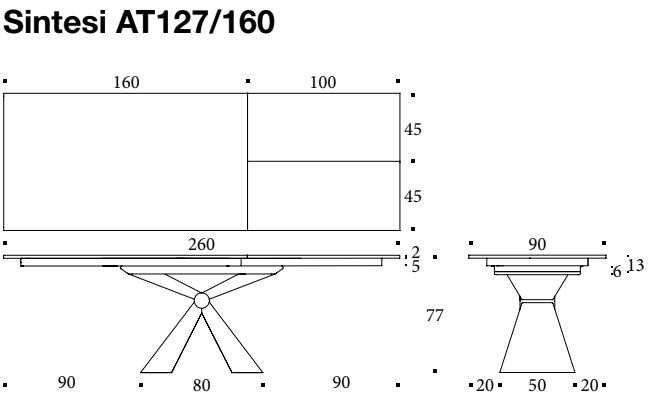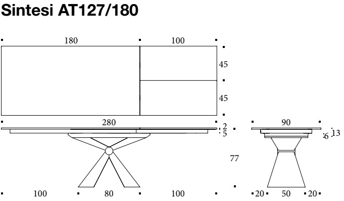 Tavolo allungabile Sintesi di Altacom. Tavolo da pranzo, struttura allungabile in metallo, meccanismo telscopico, piano in nobilitato o ceramica. Apertura sincronizzata con prolunga interna a libro. Piano nobilitato: prolunga stessa finitura del piano. Piano ceramica: prolunga in tinta con pannello.
