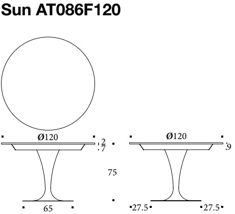 Tavolofisso Sun di Altacom. Base centrale in metallo, piano in nobilitato, vetro, legno, effetto malta o ceramica.