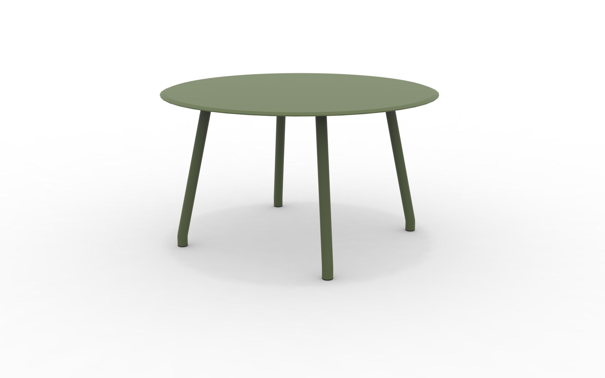 Tavolo Verdea rotondo di Vermobil in alluminio. Adatto per l'esterno e disponibile in diverse finiture. Tavolo con bordo smussato. Tavolo smontabile.