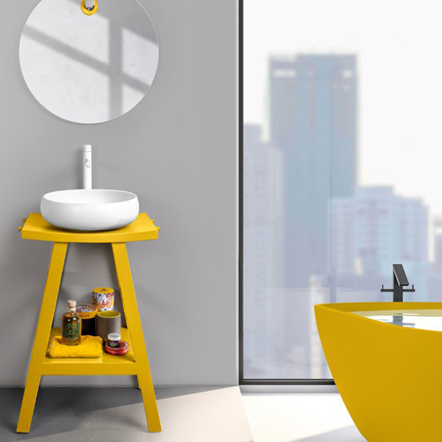 Consolle in Teak naturale di recupero trattato. Top semicurvo con gan- ci portasalviette e comodo ripiano. Disponibile nelle varianti: naturale, bianco, nero, verde, blu, giallo e grigio.